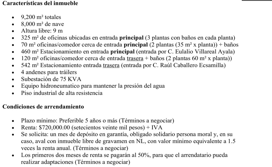 NAVE INDUSTRIAL / RENTA / 8,000 m²  / ESCOBEDO / NUEVO LEÓN